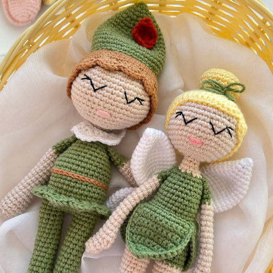 Σετ πλεκτό κουκλάκι Πήτερ Παν και πλεκτή νεράιδα Τίνκερμπελ, ύψος 27/24εκ