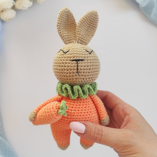 Σετ πλεκτό μπεζ λαγουδάκι με πορτοκαλί ολόσωμο και καρότο και τελάρο κεντήματος