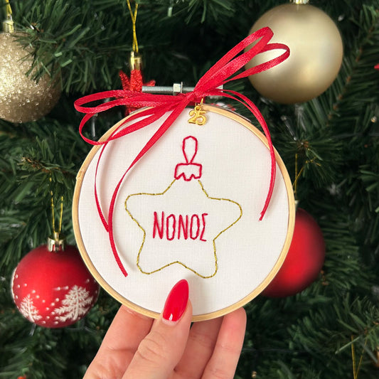 Χριστουγεννιάτικο Χειροποίητο Τελάρο Κεντήματος με Γούρι "ΝΟΝΑ" - διάμετρος 10εκ
