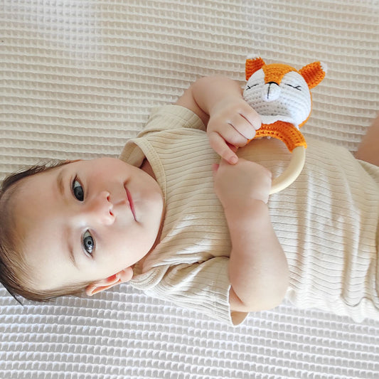 Πλεκτή κουδουνίστρα αλεπού με λευκό γιακά, ύψος 16εκ