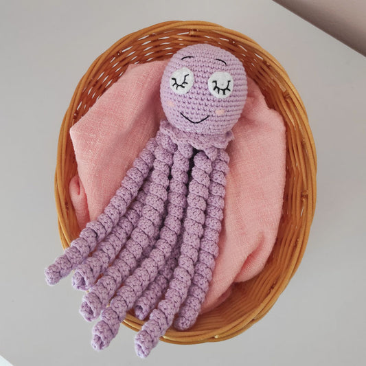 Πλεκτό κουκλάκι λιλά χταπόδι, ύψος 23εκ