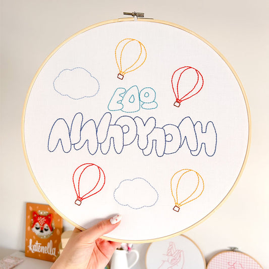 Προσωποποιημένο διακοσμητικό τελάρο κεντήματος με θέμα "Αερόστατο" και το όνομα του παιδιού, διάμετρος 26εκ