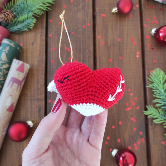 Πλεκτό Χριστουγεννιάτικο Στολίδι Μικρό Κόκκινο Αηδόνι- Ύψος 6εκ