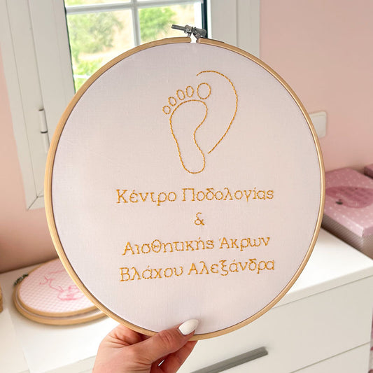 Προσωποποιημένο διακοσμητικό τελάρο κεντήματος με το όνομα της επιχείρησής σας, διάμετρος 13,5εκ