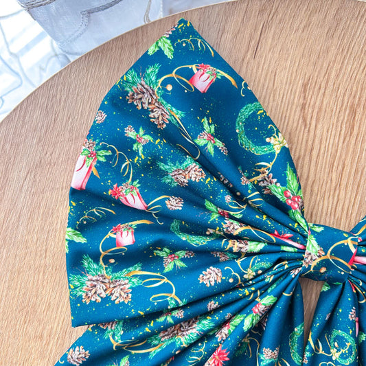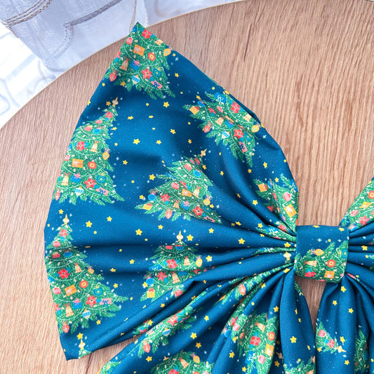 Πράσινος Φιόγκος με Χριστουγεννιάτικα Δέντρα - Διακοσμητικός Χειροποίητος Υφασμάτινος Φιόγκος - Ύψος 45εκ Μήκος 30εκ
