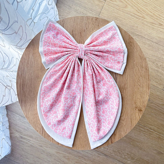 Διακοσμητικός Χειροποίητος Υφασμάτινος Φιόγκος σε Λευκό και Ροζ Λαχούρι - Ύψος 47εκ Μήκος 30εκ