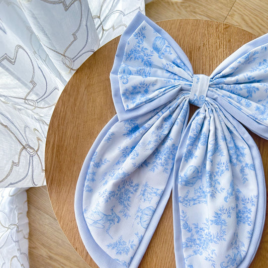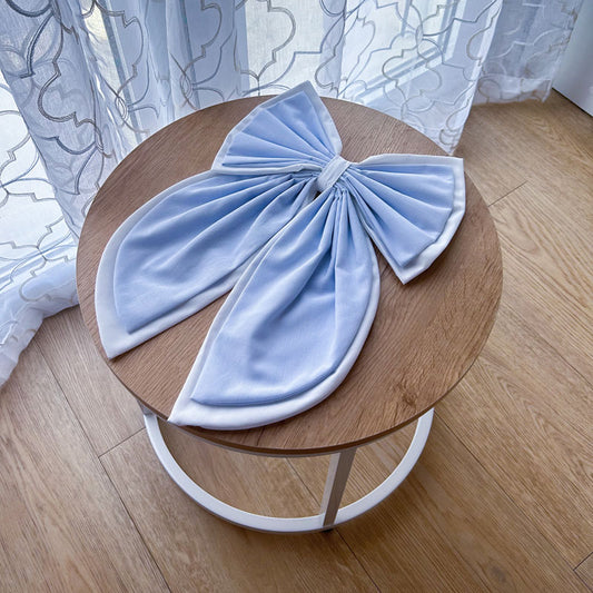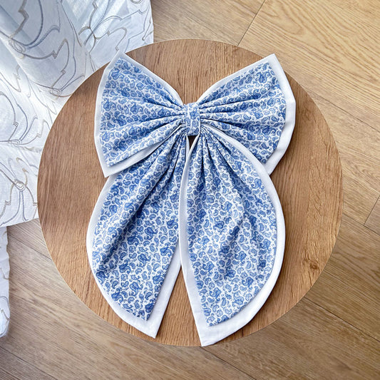 Διακοσμητικός Χειροποίητος Υφασμάτινος Φιόγκος σε Λευκό και Μπλε Λαχούρι - Ύψος 47εκ Μήκος 30εκ
