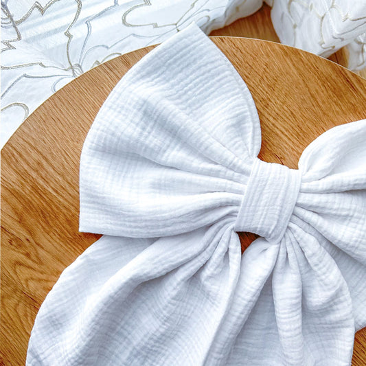 Λευκός Φιόγκος Μουσελίνα - Διακοσμητικός Χειροποίητος Υφασμάτινος Φιόγκος - Ύψος 47εκ Μήκος 30εκ