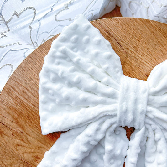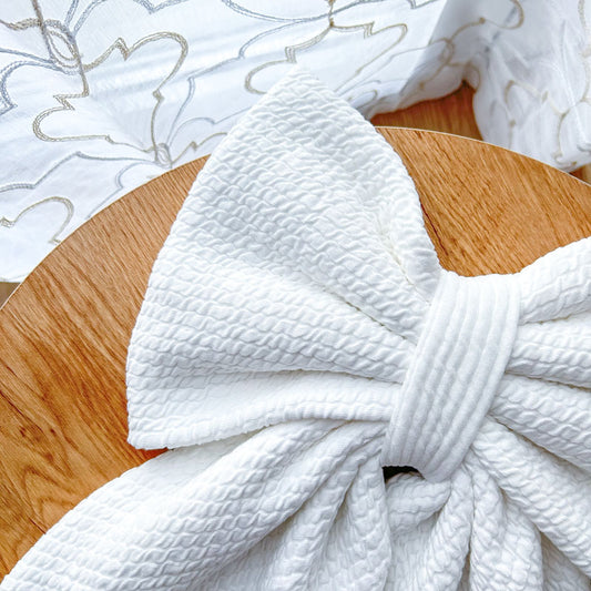 Λευκός Φιόγκος Πικέ - Διακοσμητικός Χειροποίητος Χειμερινός Φιόγκος - Ύψος 47εκ Μήκος 30εκ