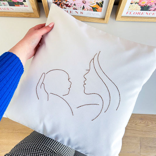 Χειροποίητο Διακοσμητικό Μαξιλάρι με Κέντημα - "Μαμά με Μωρό"
