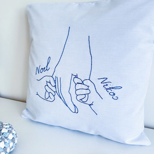 Χειροποίητο Διακοσμητικό Μαξιλάρι με Κέντημα - Προσωποποιημένο - "Μαμά, Μπαμπάς και Μωρό"