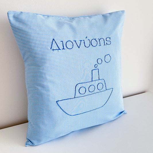 Χειροποίητο Διακοσμητικό Μαξιλάρι με Κέντημα - Προσωποποιημένο - "Όνομα με Καραβάκι"