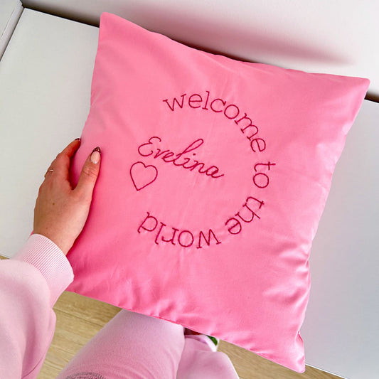 Χειροποίητο Διακοσμητικό Μαξιλάρι με Κέντημα - Προσωποποιημένο - "Welcome To The World"