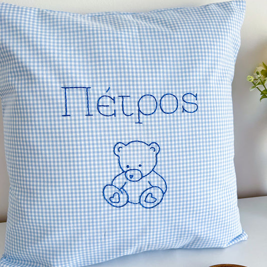Χειροποίητο Διακοσμητικό Μαξιλάρι με Κέντημα - Προσωποποιημένο - "Όνομα με Αρκουδάκι"