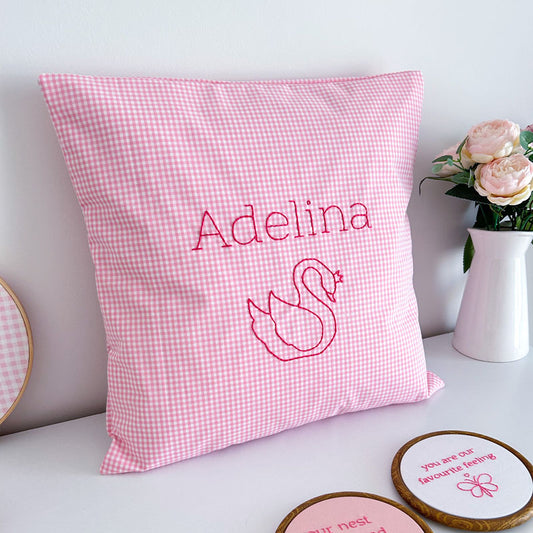 Χειροποίητο Διακοσμητικό Μαξιλάρι με Κέντημα - Προσωποποιημένο - "Όνομα με Κύκνο"
