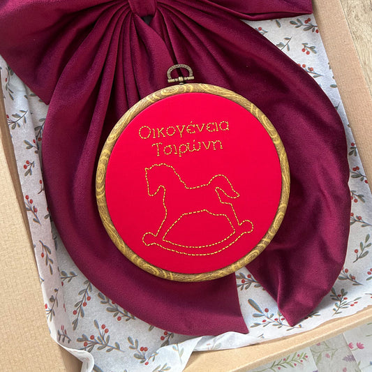 Χριστουγεννιάτικο Χειροποίητο Τελάρο Κεντήματος "Οικογένεια" με αλογάκι - διάμετρος 13,5εκ
