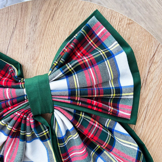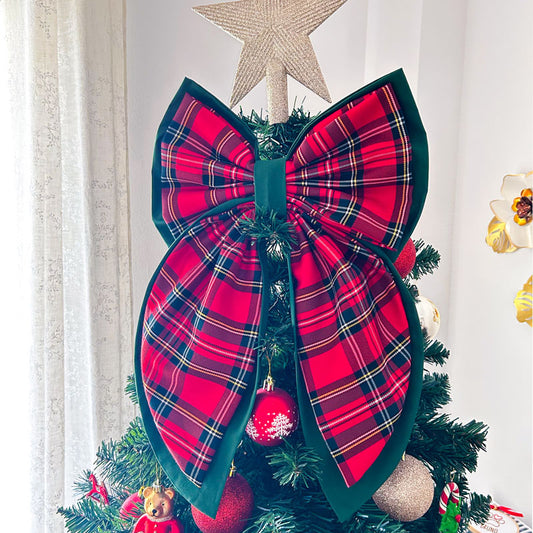 Πράσινος φιόγκος με κόκκινο καρό - Διακοσμητικός Χειροποίητος Υφασμάτινος Φιόγκος - Ύψος 47εκ Μήκος 30εκ