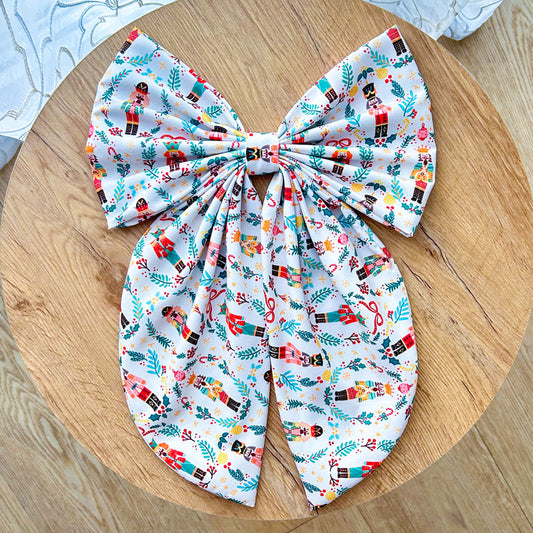 Λευκός Φιόγκος - Πολύχρωμοι Καρυοθραύστες - Διακοσμητικός Χειροποίητος Υφασμάτινος Φιόγκος - Ύψος 45εκ Μήκος 30εκ