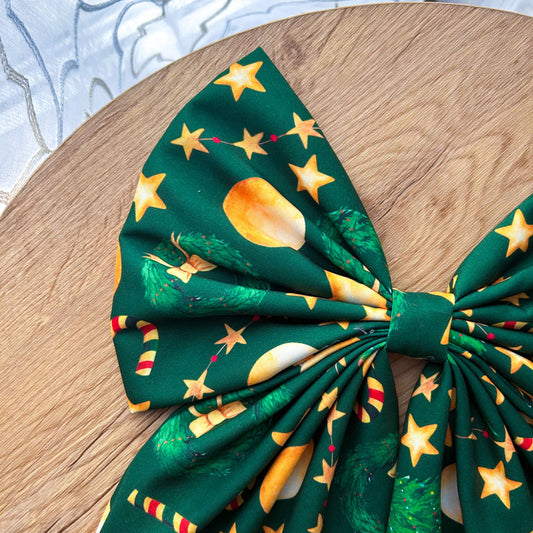 Πράσινος Φιόγκος με Χριστουγεννιάτικα Μοτίβα - Διακοσμητικός Χειροποίητος Υφασμάτινος Φιόγκος - Ύψος 45εκ Μήκος 30εκ