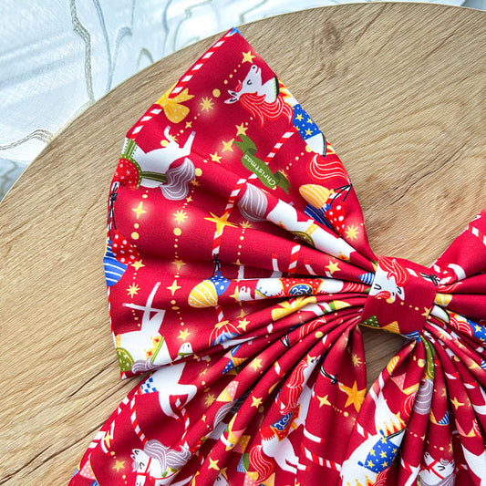 Κόκκινος Φιόγκος με Άλογα Καρουζέλ - Διακοσμητικός Χειροποίητος Υφασμάτινος Φιόγκος - Ύψος 45εκ Μήκος 30εκ