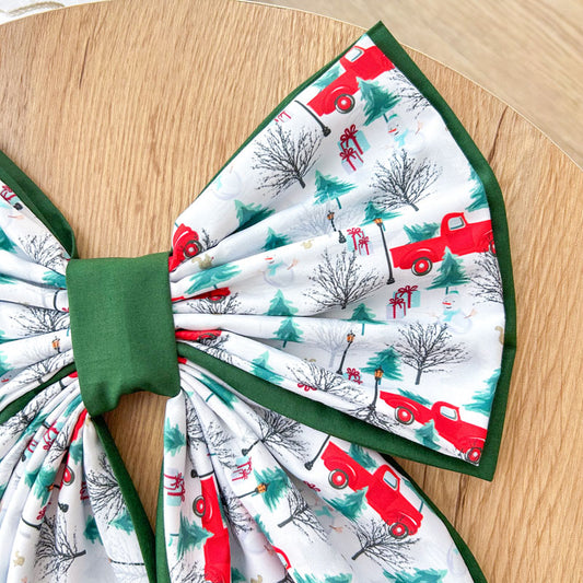 Διπλός Πράσινος Φιόγκος - Κόκκινα Αυτοκίνητα - Διακοσμητικός Χειροποίητος Υφασμάτινος Φιόγκος - Ύψος 47εκ Μήκος 30εκ