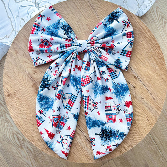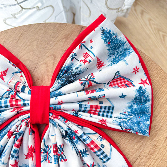 Διπλός Κόκκινος Φιόγκος - Σκανδιναβικό Χωριό - Διακοσμητικός Χειροποίητος Υφασμάτινος Φιόγκος - Ύψος 47εκ Μήκος 30εκ