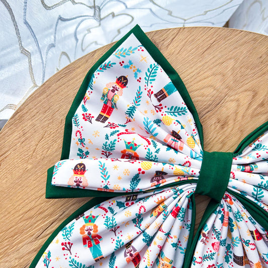 Διπλός Πράσινος Φιόγκος - Καρυοθραύστες - Διακοσμητικός Χειροποίητος Υφασμάτινος Φιόγκος - Ύψος 47εκ Μήκος 30εκ