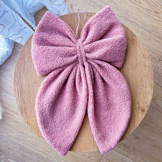 Διακοσμητικός Χειροποίητος Υφασμάτινος Φιόγκος σε Λευκό και Ροζ Λαχούρι - Ύψος 47εκ Μήκος 30εκ