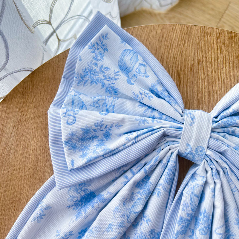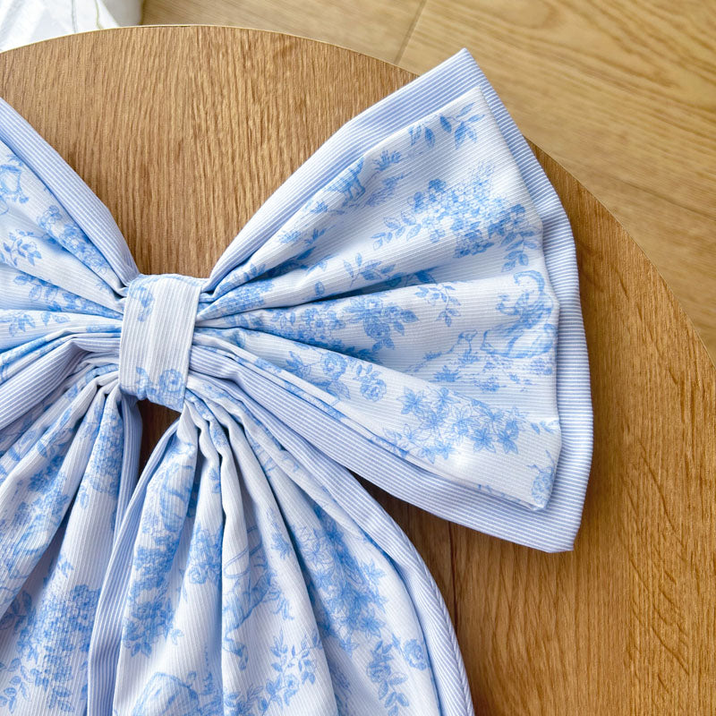 💙 Υφασμάτινος διπλός φιόγκος. Ο μεγάλος φιόγκος είναι γαλάζιος ριπ και ο μικρός είναι λευκός με γαλάζιες λεπτομέρειες σε παραστάσεις με αγγελάκια. Το ύψος του είναι 47 εκατοστά και το μήκος του στο πιο φαρδύ σημείο είναι 30 εκατοστά. Έρχεται σε εσάς με περασμένη κορδέλα στο πάνω μέρος σαν θηλιά για να τον κρεμάσετε απευθείας!
