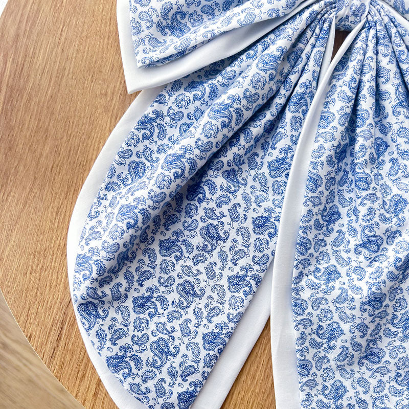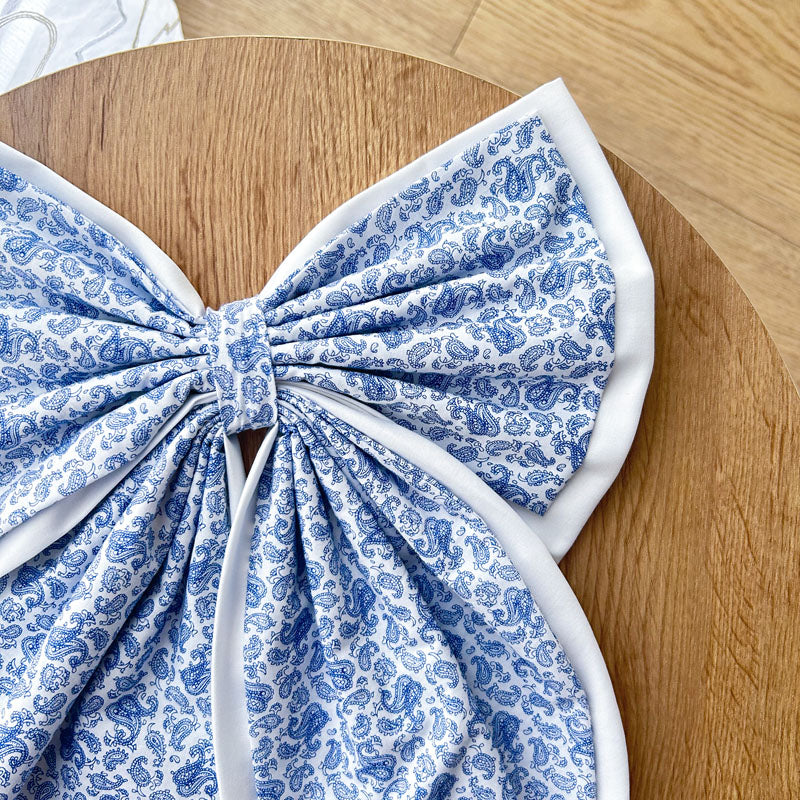 Διακοσμητικός Χειροποίητος Υφασμάτινος Φιόγκος σε Λευκό και Μπλε Λαχούρι - Ύψος 47εκ Μήκος 30εκ