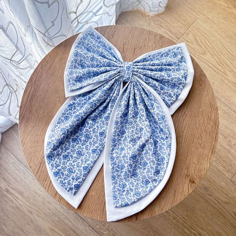 💙 Υφασμάτινος διπλός φιόγκος σε χρώμα λευκό και μπλε λαχούρι. Το ύψος του είναι 47 εκατοστά και το μήκος του στο πιο φαρδύ σημείο είναι 30 εκατοστά. Έρχεται σε εσάς με περασμένη κορδέλα στο πάνω μέρος σαν θηλιά για να τον κρεμάσετε απευθείας!