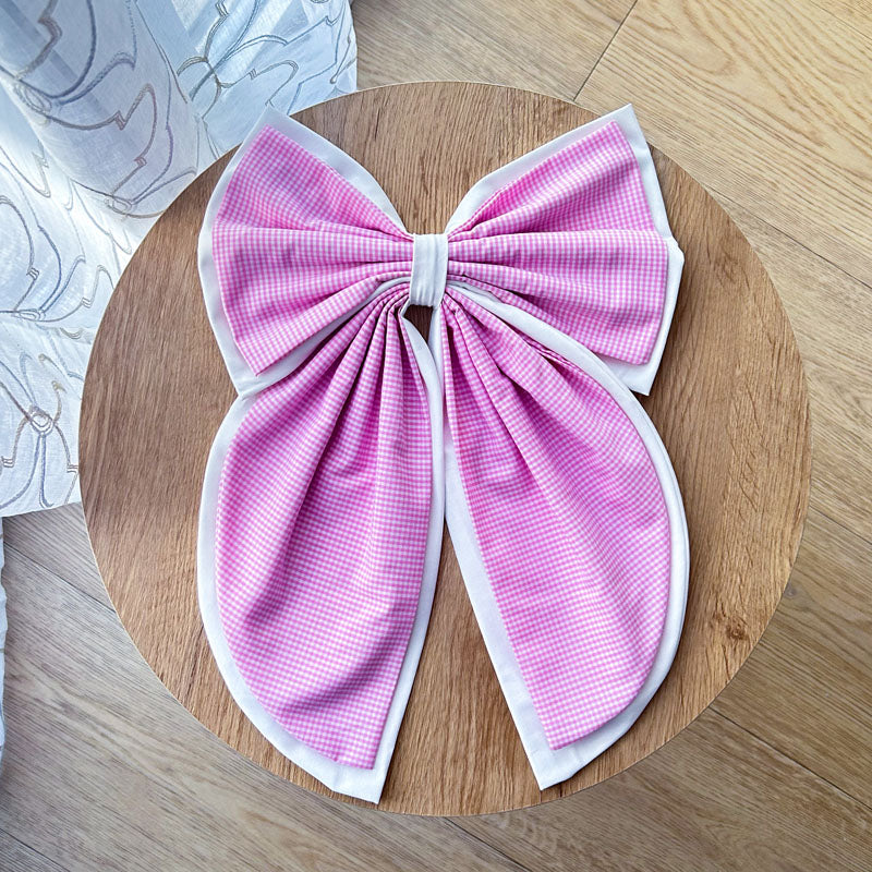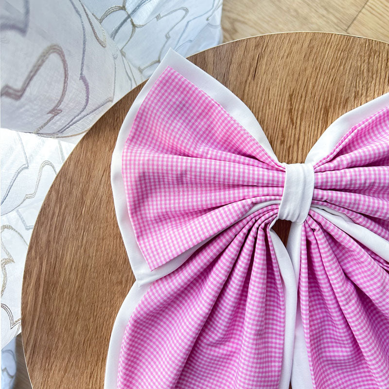 🩷 Υφασμάτινος διπλός φιόγκος σε χρώμα λευκό και ροζ καρό. Το ύψος του είναι 47 εκατοστά και το μήκος του στο πιο φαρδύ σημείο είναι 30 εκατοστά. Έρχεται σε εσάς με περασμένη κορδέλα στο πάνω μέρος σαν θηλιά για να τον κρεμάσετε απευθείας!