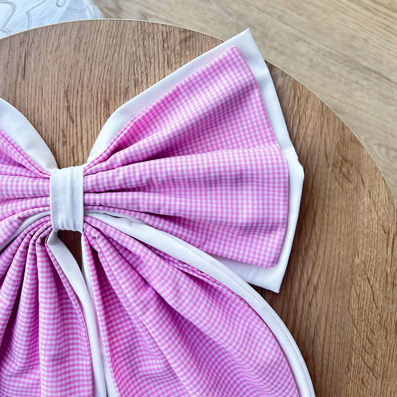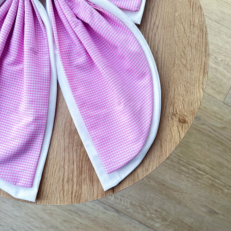 Διακοσμητικός Χειροποίητος Υφασμάτινος Φιόγκος σε Λευκό και Ροζ Καρό - Ύψος 47εκ Μήκος 30εκ