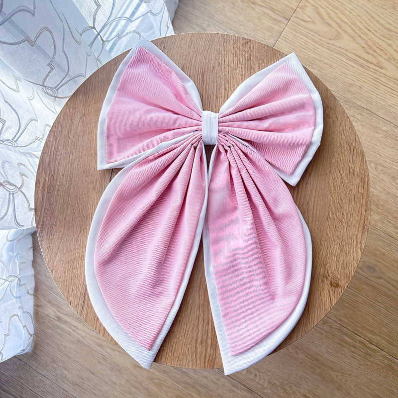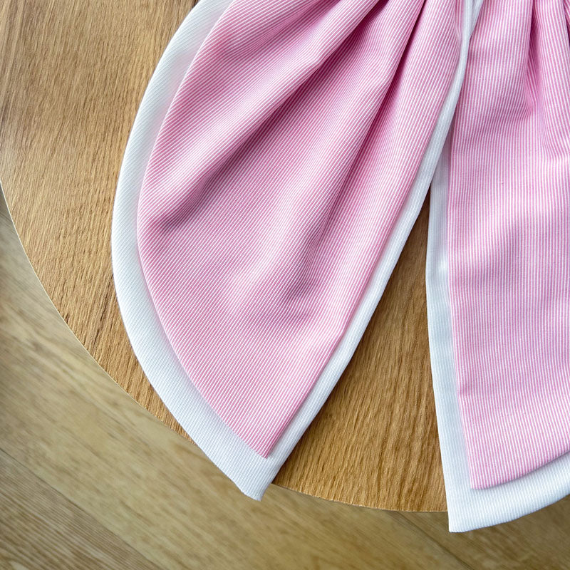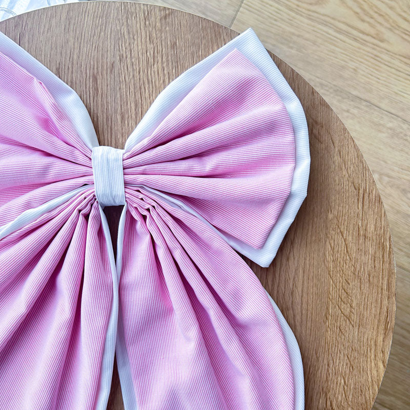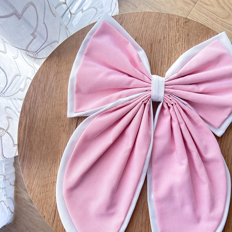 🩷 Υφασμάτινος διπλός φιόγκος σε χρώμα λευκό και ροζ ριγέ. Το ύψος του είναι 47 εκατοστά και το μήκος του στο πιο φαρδύ σημείο είναι 30 εκατοστά. Έρχεται σε εσάς με περασμένη κορδέλα στο πάνω μέρος σαν θηλιά για να τον κρεμάσετε απευθείας!
