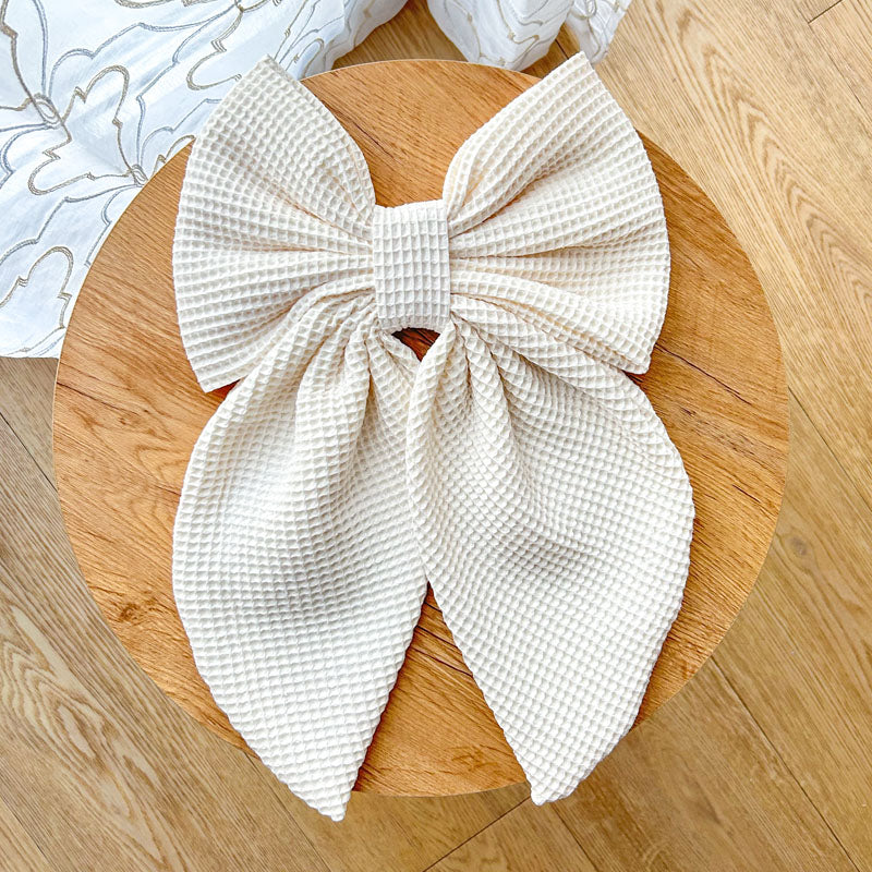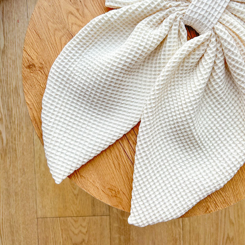 🩷 Υφασμάτινος μονός φιόγκος σε εκρού χρώμα, πικέ. Το ύψος του είναι 47 εκατοστά και το μήκος του στο πιο φαρδύ σημείο είναι 30 εκατοστά. Έρχεται σε εσάς με περασμένη κορδέλα στο πάνω μέρος σαν θηλιά για να τον κρεμάσετε απευθείας!