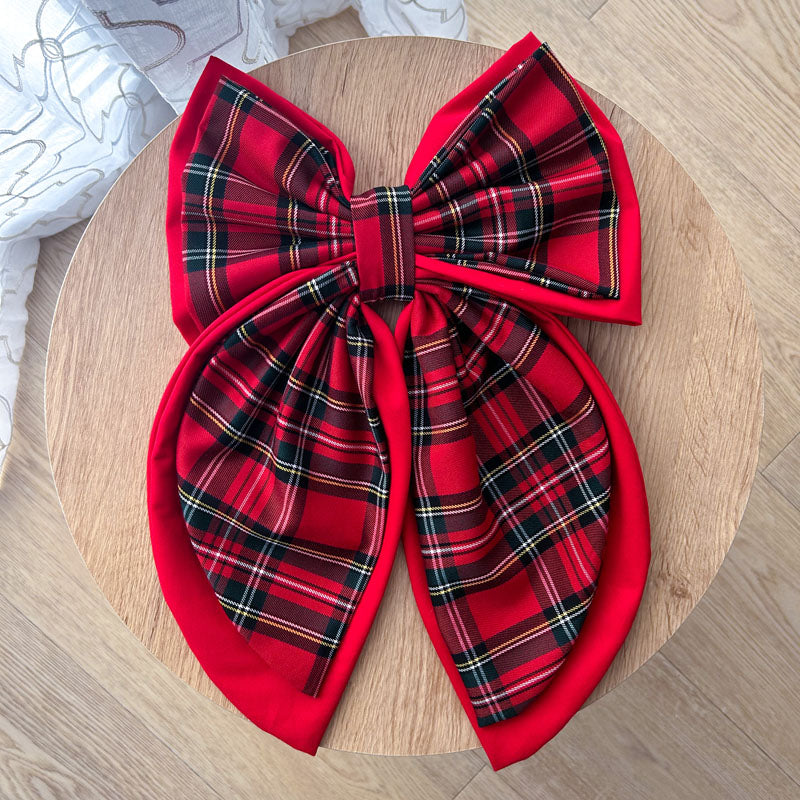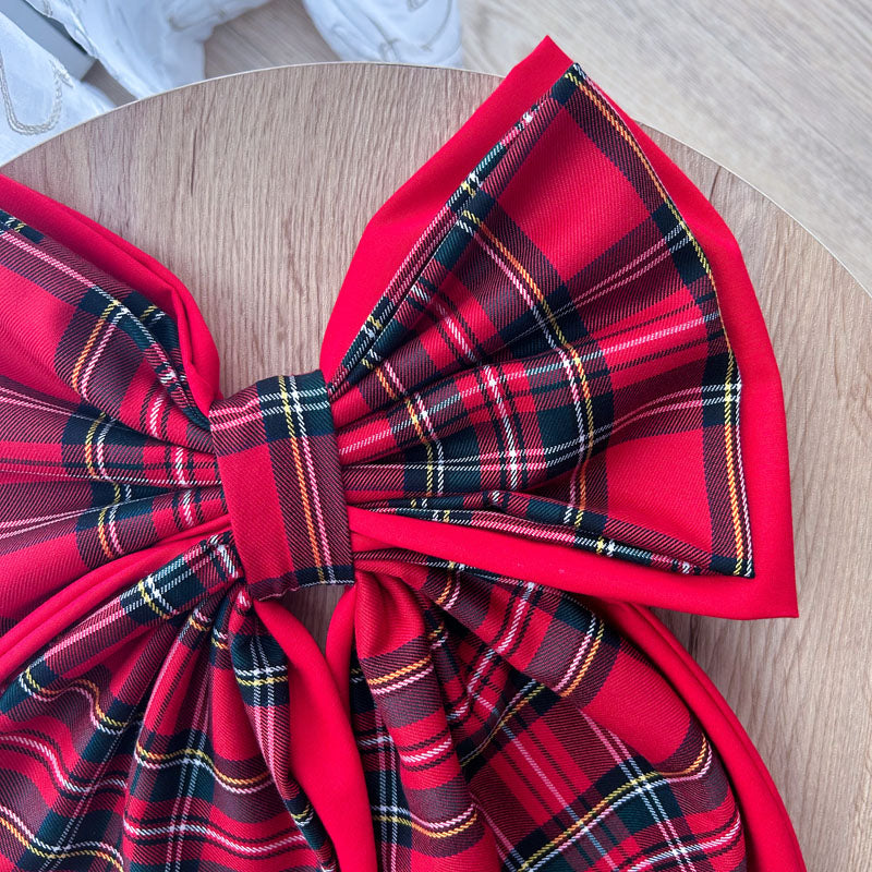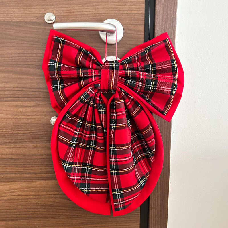 Κόκκινος φιόγκος με κόκκινο καρό - Διακοσμητικός Χειροποίητος Υφασμάτινος Φιόγκος - Ύψος 47εκ Μήκος 30εκ