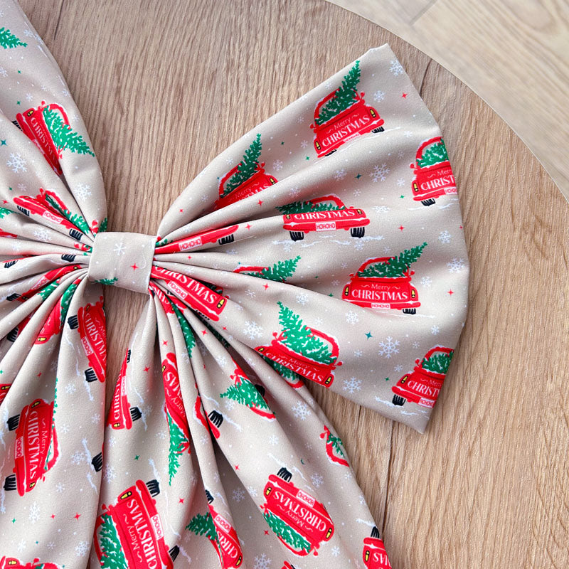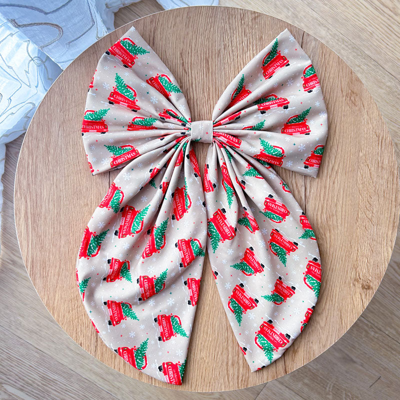 ❤️ Υφασμάτινος μπεζ μονός φιόγκος με χριστουγεννιάτικα σχέδια (κόκκινα αυτοκινητάκια με το χριστουγεννιάτικο δέντρο στην οροφή). Το ύψος του είναι 45 εκατοστά και το μήκος του στο πιο φαρδύ σημείο είναι 30 εκατοστά. Έρχεται σε εσάς με περασμένη κορδέλα στο πάνω μέρος σαν θηλιά για να τον κρεμάσετε απευθείας!