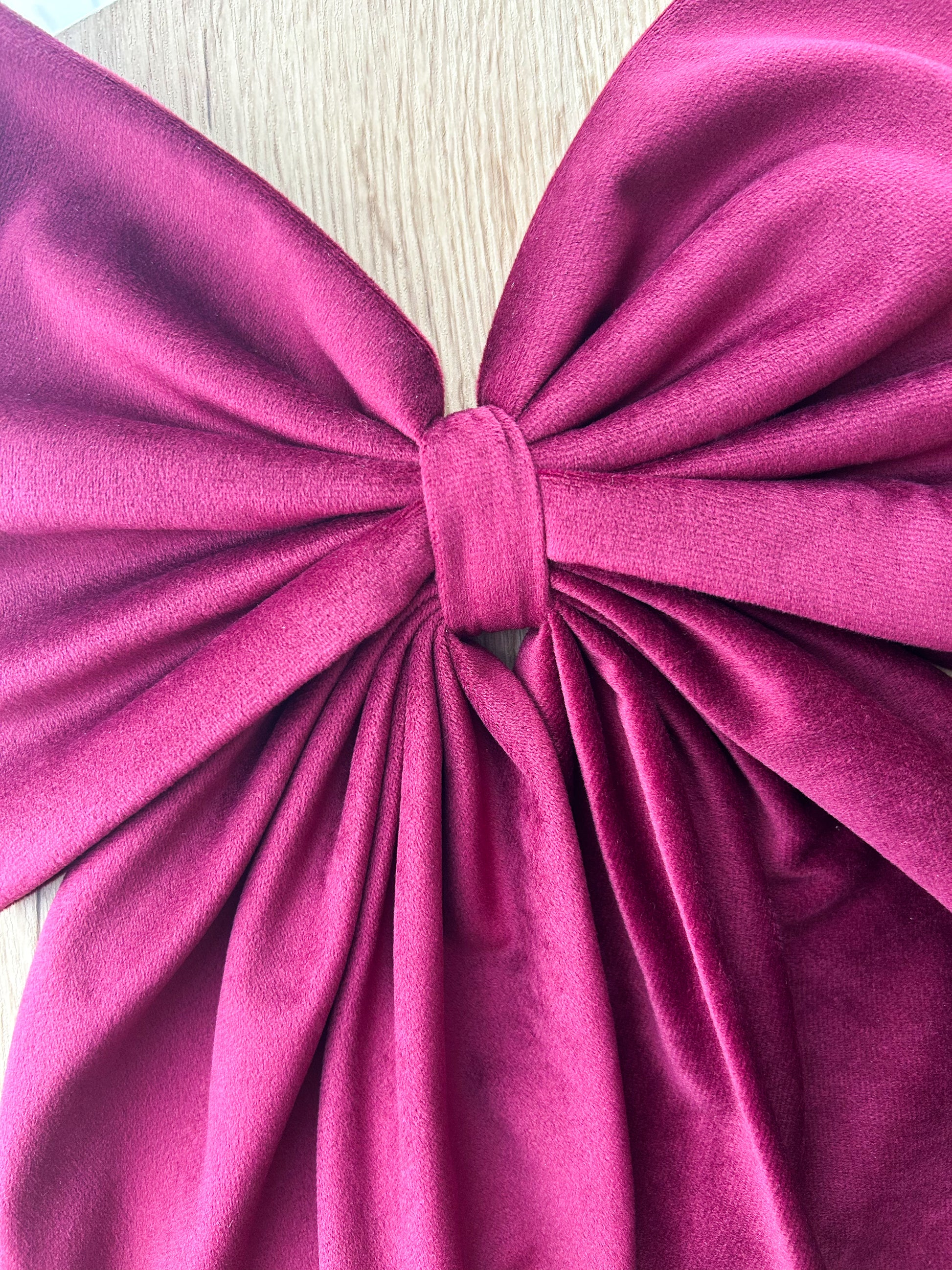 ❤️ Υφασμάτινος βελούδινος μονός φιόγκος σε μπορντό χρώμα. Το ύψος του είναι 47 εκατοστά και το μήκος του στο πιο φαρδύ σημείο είναι 30 εκατοστά. Έρχεται σε εσάς με περασμένη κορδέλα στο πάνω μέρος σαν θηλιά για να τον κρεμάσετε απευθείας!
