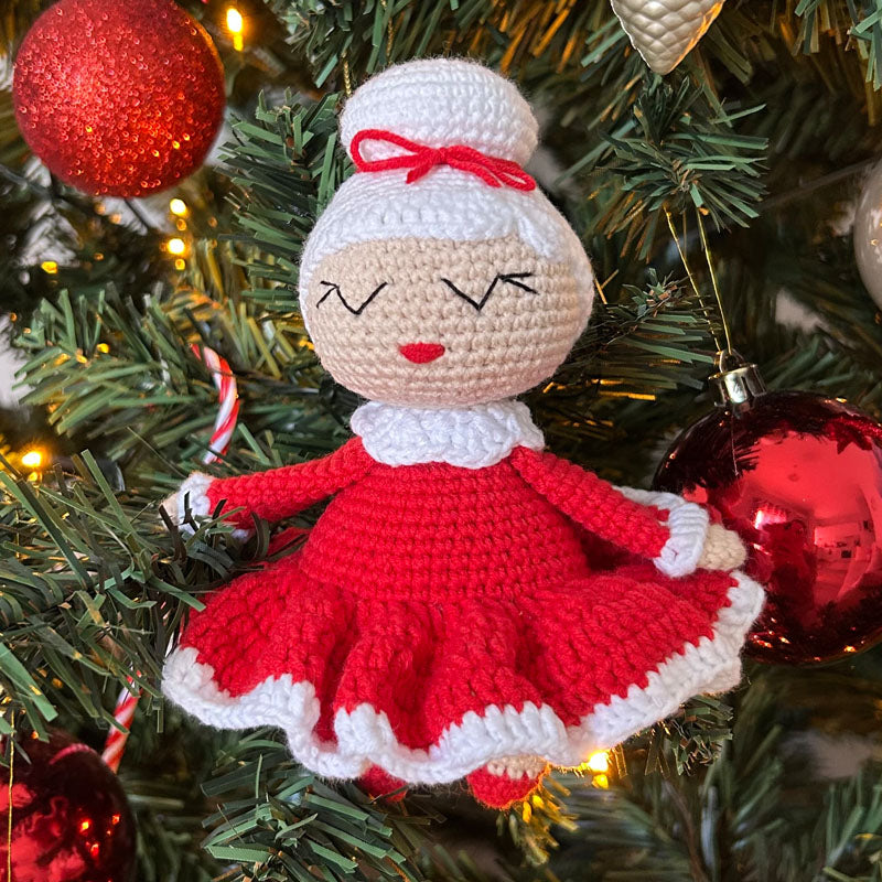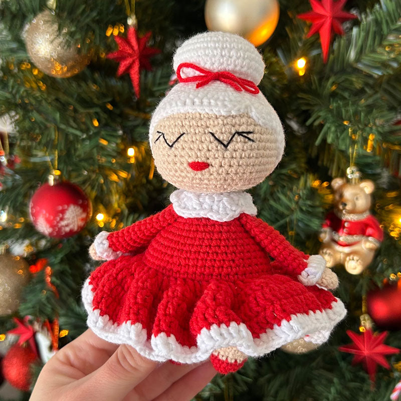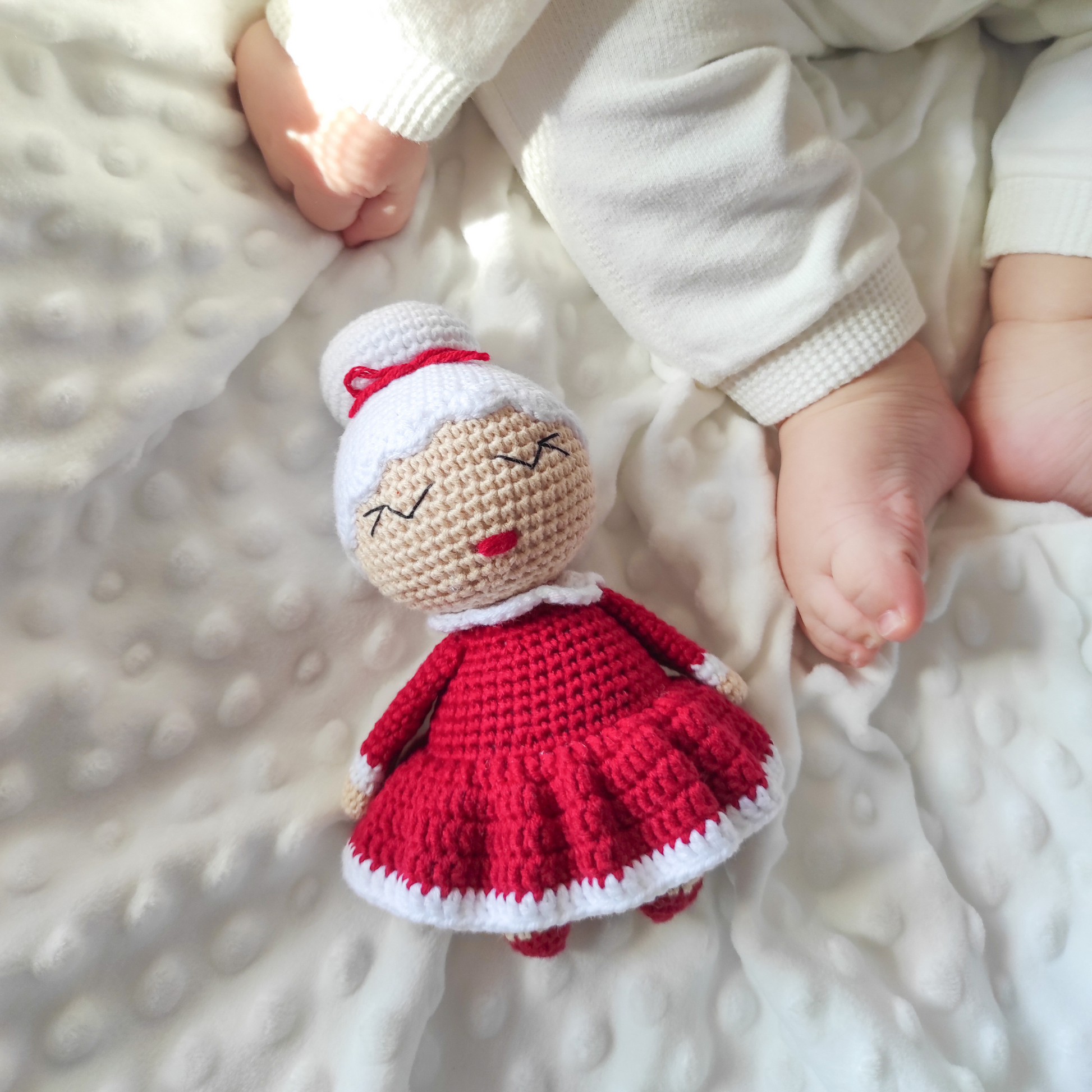 Πλεκτή Κούκλα Γυναίκα του Άγιου Βασίλη - Χειροποίητο Χριστουγεννιάτικο Δώρο για Μωρά και Παιδιά - Ύψος 16εκ