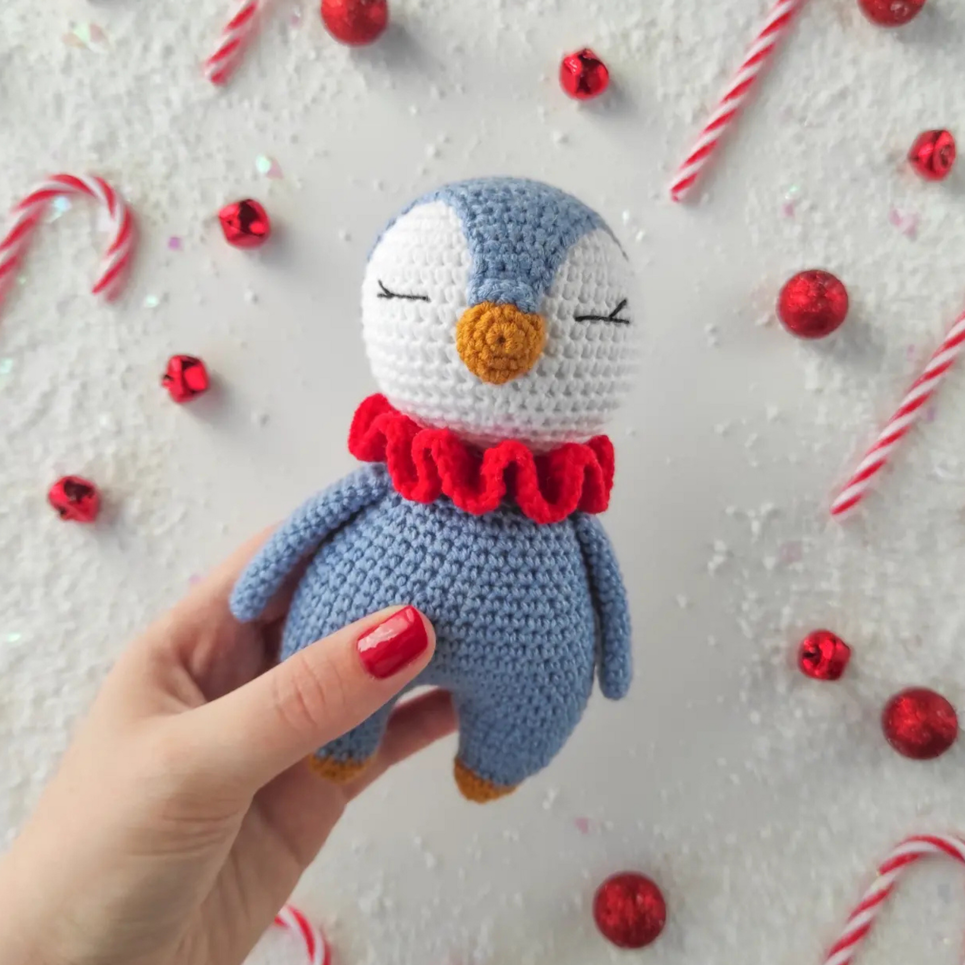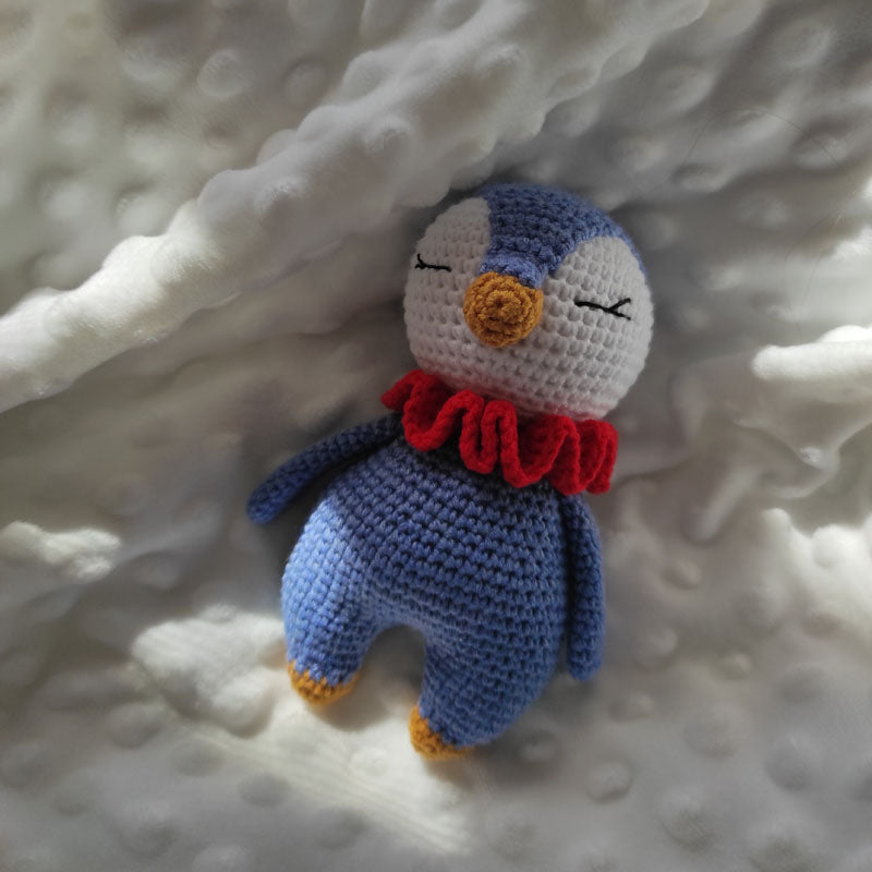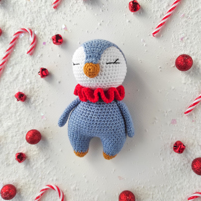Πλεκτό Κουκλάκι Μπλε Πιγκουίνος - Χειροποίητο Χριστουγεννιάτικο Δώρο για Μωρά και Παιδιά - Ύψος 14εκ