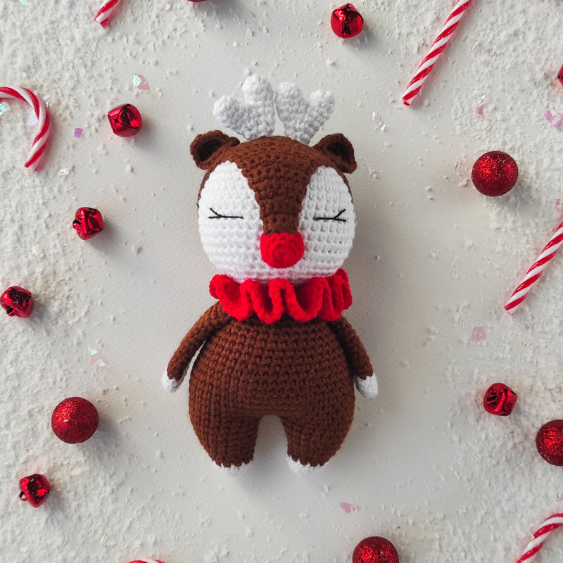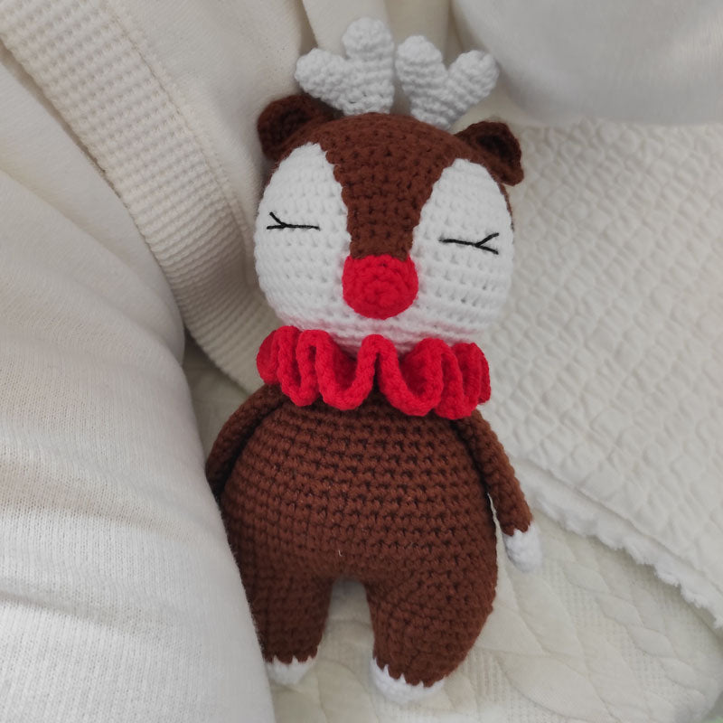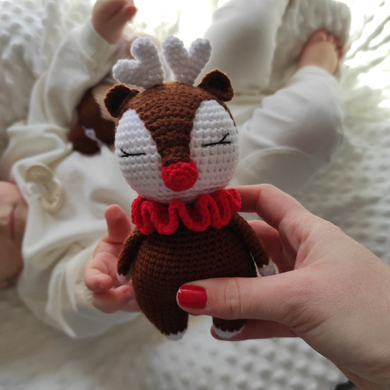Πλεκτό κουκλάκι Rudolf - Χειροποίητο Χριστουγεννιάτικο Δώρο για Μωρά και Παιδιά - Ύψος 16εκ