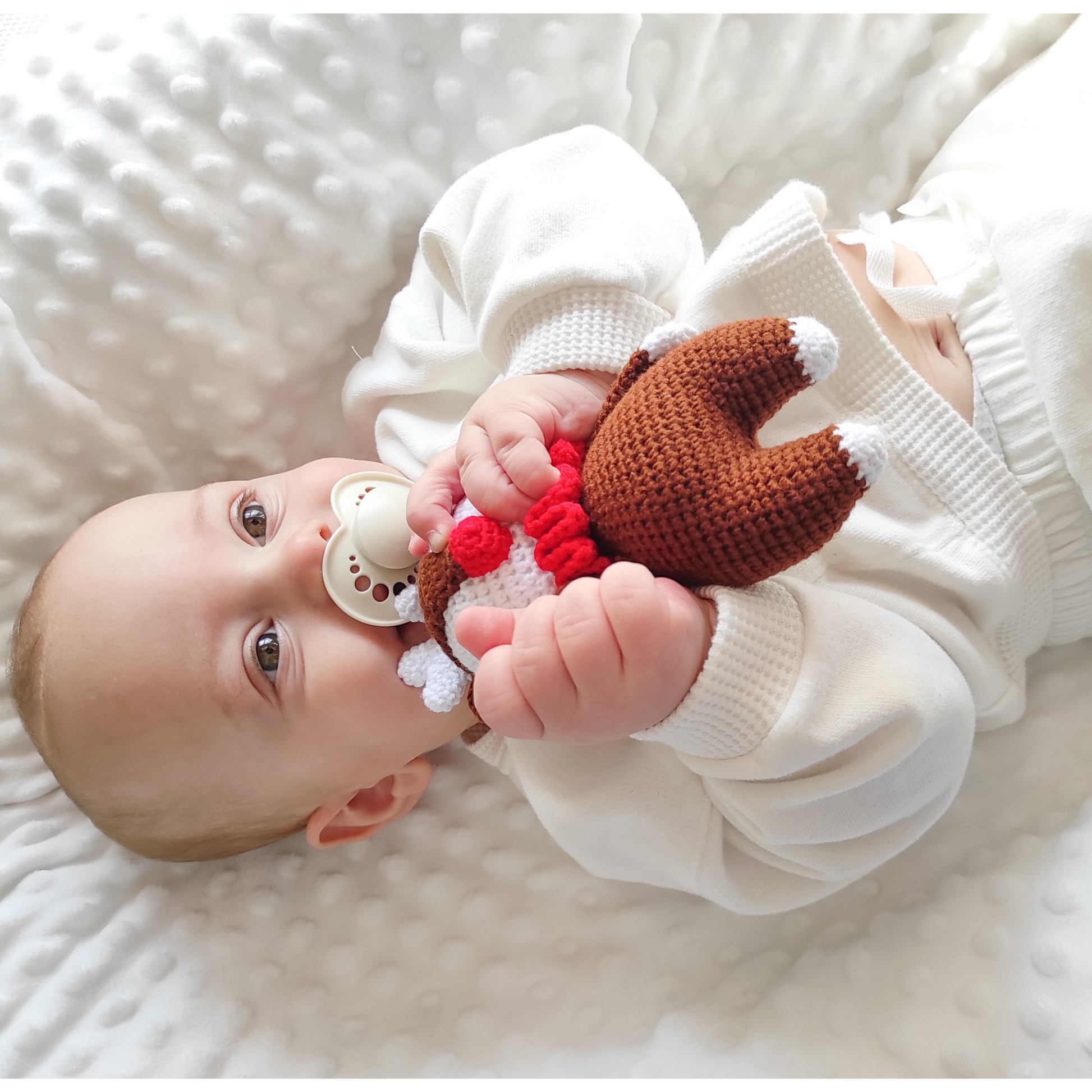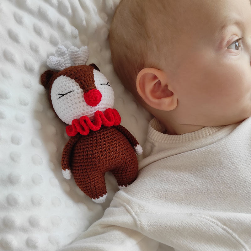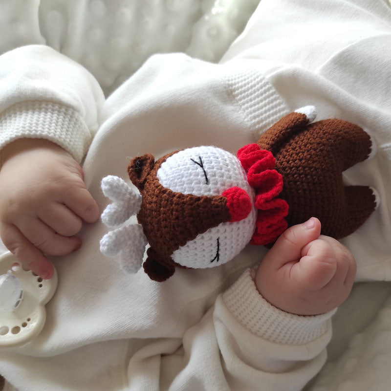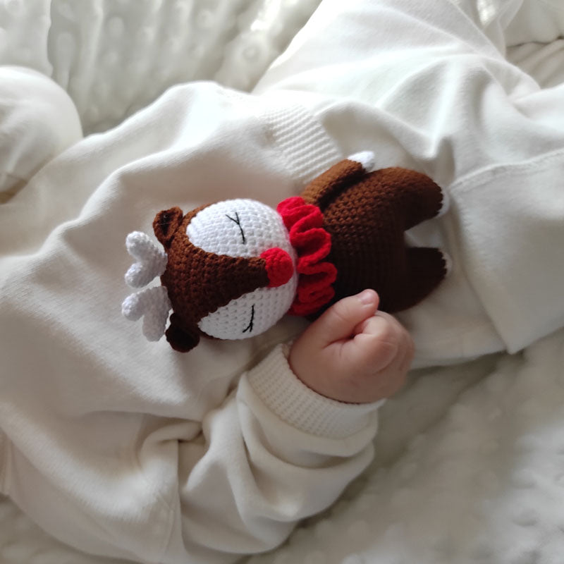 🦌Αυτό το αξιολάτρευτο χειροποίητο πλεκτό κουκλάκι Rudolf είναι το τέλειο δώρο για baby shower, για νεογέννητο μωράκι ή για τη διακόσμηση του παιδικού δωματίου.