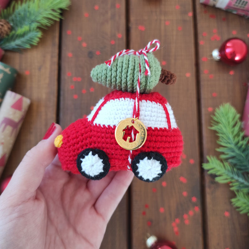 🚗Πλεκτό Χριστουγεννιάτικο Αυτοκίνητο (ύψος 10,5εκ)