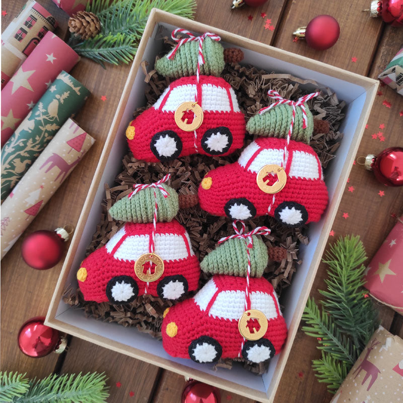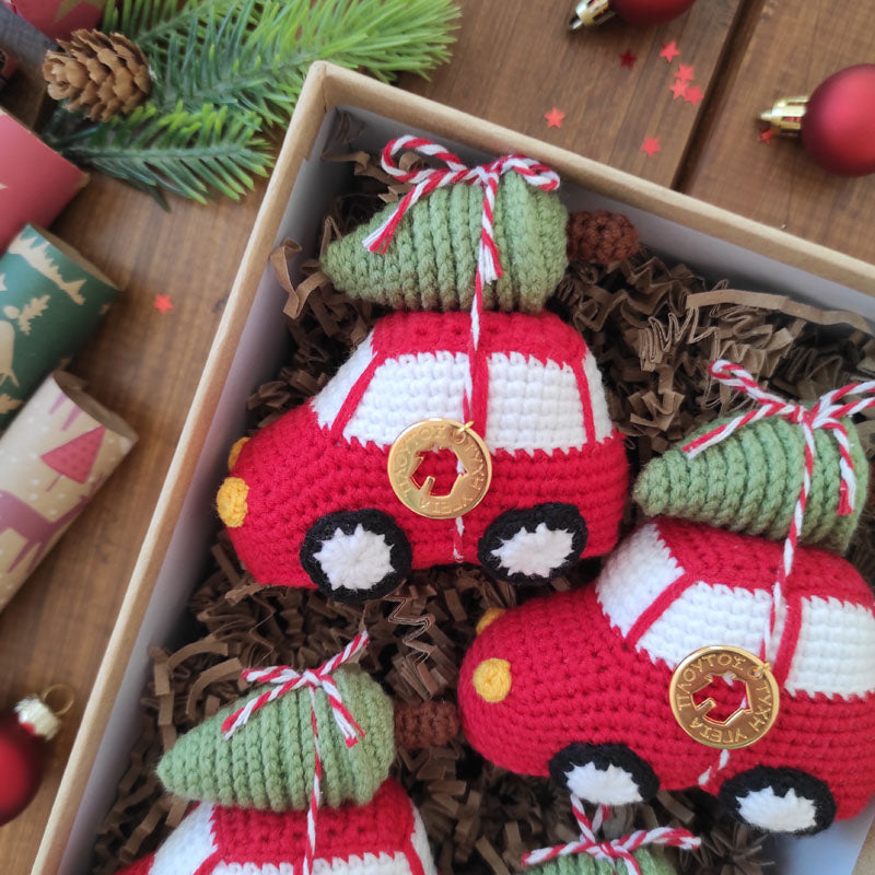 Πλεκτό Χριστουγεννιάτικο Γούρι Αυτοκίνητο - Χειροποίητα Στολίδια και Δώρα