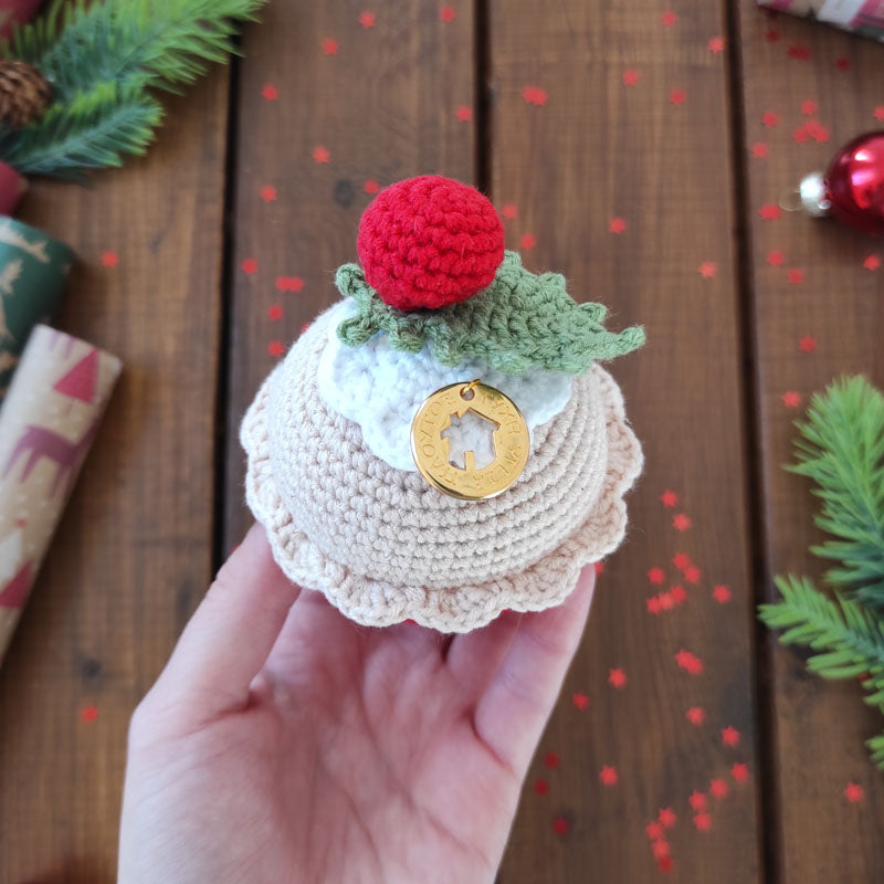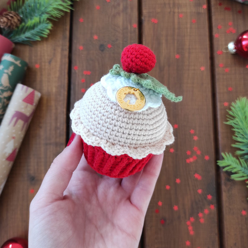 🧁 Πλεκτό Χριστουγεννιάτικο Cupcake (ύψος 10,5cm)