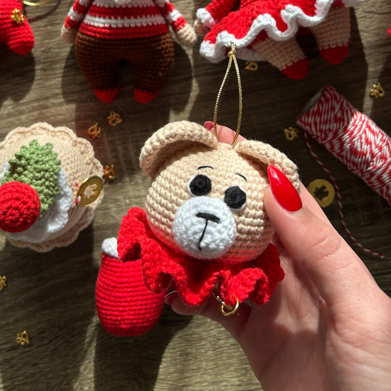 Πλεκτό Χριστουγεννιάτικο Στολίδι / Γούρι Αρκουδάκι - Ύψος 9εκ