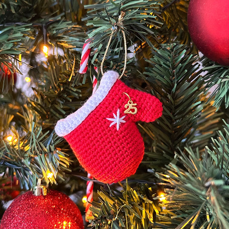 Πλεκτό Χριστουγεννιάτικο Στολίδι / Γούρι Κόκκινο Γάντι- Ύψος 7εκ