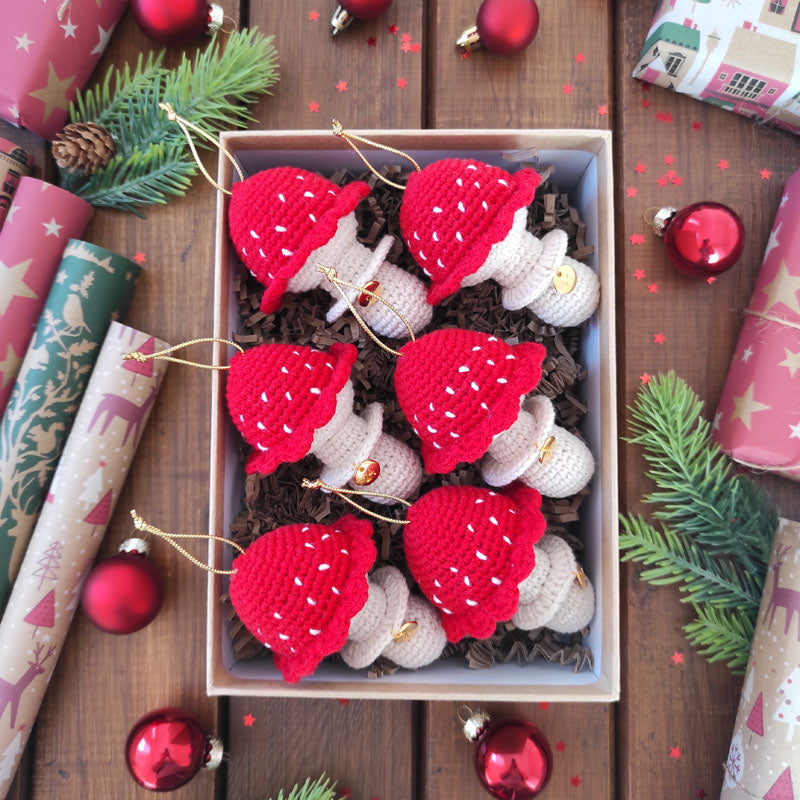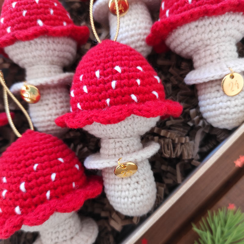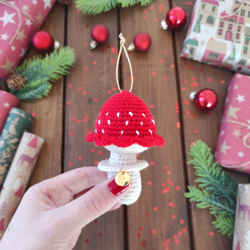 Πλεκτό Χριστουγεννιάτικο Στολίδι / Γούρι Μικρό Μανιτάρι - Ύψος 9,5εκ
