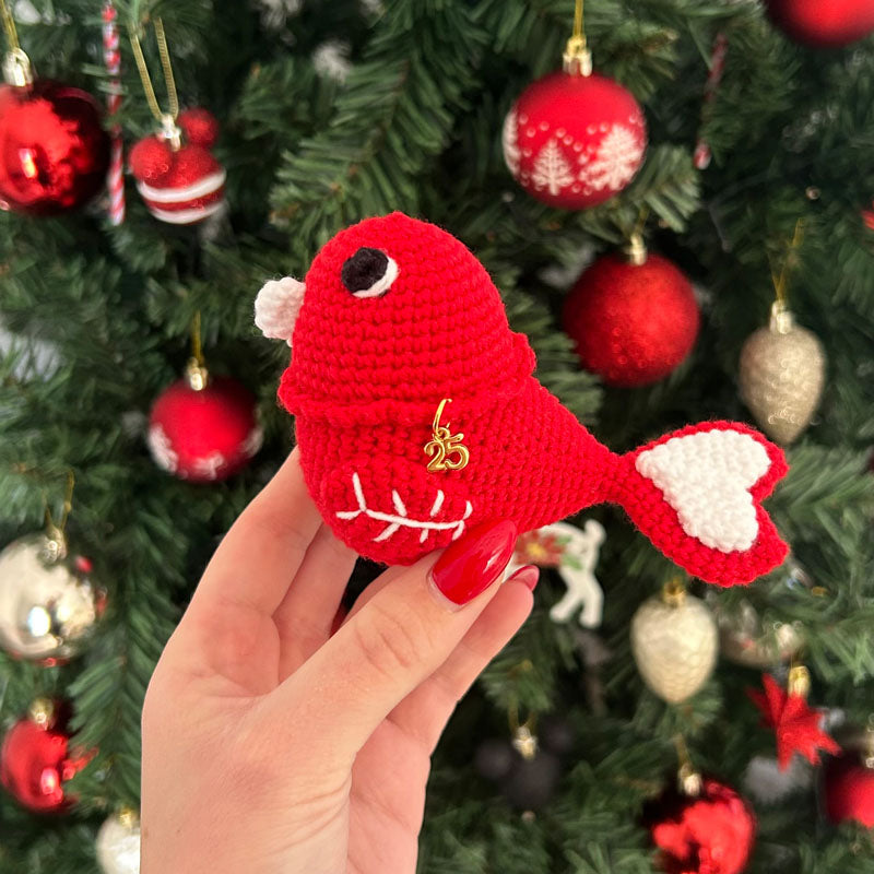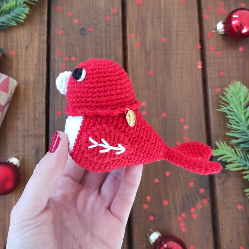 Πλεκτό Χριστουγεννιάτικο Στολίδι / Γούρι Μεγάλο Κόκκινο Αηδόνι