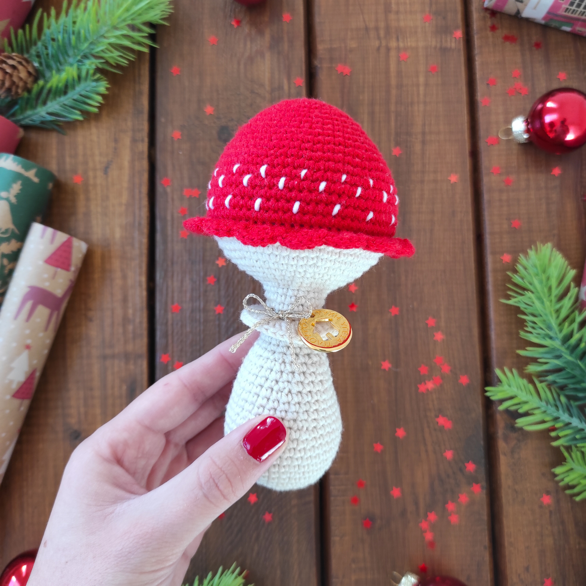 Πλεκτό Χριστουγεννιάτικο Στολίδι / Γούρι Μεγάλο Κόκκινο Μανιτάρι - Ύψος 14εκ